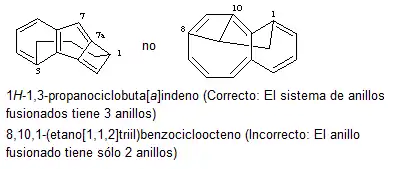 Para nombrar un sistema policíclico, además de la identificación del número de ciclos y las cabezas de puentes, se deben tomar en cuenta las siguientes consideraciones:[5]