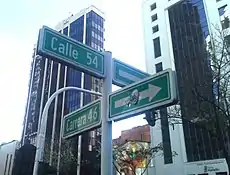 Las diferentes vías se identifican por caracteres alfanuméricos ya sean ordinales (Primera Avenida) o cardinales (Calle 34), o por nombres propios (Calle Houston).[3]