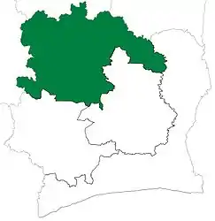 Utilizando los límites actuales como referencia, el territorio del departamento del Norte estaba compuesto por las regiones de Denguélé, Savanes y Woroba.