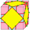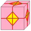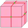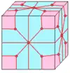 A partir de aquí, las operaciones se visualizan en semillas de cubo, y se dibujan en la superficie de ese cubo. Las caras azules cruzan los bordes de la semilla y las caras rosadas se encuentran sobre los vértices de la semilla. Existe cierta flexibilidad en la ubicación exacta de los vértices, especialmente con operadores quirales.