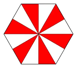 Los operadores individuales se pueden visualizar en términos de dominios fundamentales (o recintos), como se muestra a continuación. Cada triángulo rectángulo es un dominio fundamental. Cada recinto blanco es una versión rotada de los demás, al igual que cada recinto de color. Para los operadores quirales, los recintos de colores son un reflejo de los recintos blancos y todos son transitivos. En términos de grupo, los operadores aquirales corresponden a los grupos diédricos Dn donde n es el número de aristas de una cara, mientras que los operadores quirales corresponden a grupos cíclicos Cn que carecen de la simetría reflexiva de los grupos diédricos. Los operadores aquiral y quiral también se denominan operaciones locales que preservan la simetría (LSP) y operaciones locales que preservan las simetrías y que preservan la orientación (LOPSP), respectivamente.[7][8][9]