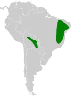 Se encuentra en el noreste de Bolivia, oeste de Paraguay y el noreste y centro de Brasil.[4]