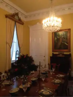 Tiene más de un acre de espacio distribuido en tres plantas y un total de sesenta y cuatro habitaciones con 165 puertas y doscientas ventanas, la mayoría de las cuales también pueden funcionar como puertas. La casa disfrutó de las novedades del siglo XIX, como un baño ubicado en cada piso con inodoros con descarga de agua y agua corriente fría y caliente, iluminación de gas en toda la casa y un complejo sistema de timbre de llamada al sirviente. Las habitaciones principales de la casa se encuentran en el segundo piso. El vestíbulo de entrada corre a lo largo de la casa y mide 12 pies de ancho y 40 pies de largo. Grandes candelabros de bronce y cristal de Baccarat cuelgan de los 15,5 pies (4,7 m) los techos altos y las puertas con perillas de porcelana alemana de Dresden pintadas a mano y tapas de ojo de cerradura a juego, que conducen a las habitaciones adyacentes miden 11 pies (3,4 m) alto. Sobre las puertas ya lo largo de los techos hay molduras de yeso friso, con modillones intercalados con pateras, que están hechas de barro, arcilla, crin de caballo y musgo español. A la derecha del vestíbulo de entrada se encuentra la habitación más inusual y, según los informes, la más favorita de John Randolph en la casa, el White Ballroom. Con columnas corintias, arcos hechos a mano y una extensión en forma de L en una bahía curva, Randolph hizo que la pintaran completamente de blanco, incluido el piso, para mostrar la belleza natural de sus siete hijas, seis de las cuales se casarían allí. Con dos chimeneas con mantos de mármol blanco rococó tallados a mano, también hay un original espejo colocado para que las mujeres pudieran ver si sus tobillos o aros se asomaban debajo de sus faldas. Sobre una de las chimeneas, hay una pintura de Mary Henshaw (sin relación con la familia), cuyos ojos se dice que siguen al espectador por la habitación. Flanqueando el vestíbulo de entrada a la izquierda se encuentra el estudio de un caballero, una escalera y el comedor formal. Tanto el estudio como el comedor cuentan con mantos de mármol negro italiano tallado a mano en sus chimeneas de carbón, y las habitaciones están llenas de muebles antiguos de época. El yeso del comedor exhibe camelias rosadas, la flor favorita de Emily Randolph, y es el único yeso de la casa que tiene color.