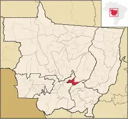 Se localiza a una latitud 14º57'25" sur y a una longitud 54º57'56" oeste, estando a una altitud de 540 metros. Su población estimada en 2004 era de 4.967 habitantes.