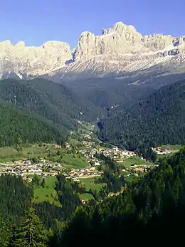 Municipios limítrofes | Cornedo all'Isarco, Moena (TN), Nova Ponente, Pozza di Fassa (TN), Predazzo (TN), Tires, Vigo di Fassa (TN) | |