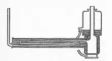 Al igual que George Stephenson, Ericsson entendió que se necesitaba un área grande para extraer el calor de los gases calientes. Esto lo consiguió mediante una larga tubería horizontal llena de agua, que corría por todo el motor. Se puede ver en la ilustración, sobresaliendo a la derecha, con la chimenea vertical unida a ella. Dentro de la sección horizontal había un tubo que transportaba los gases calientes, que formaba una 'S', por lo que los gases hacían tres pasadas a través del agua. Este tubo en forma de 'S' también incluía secciones en forma de cono, haciendo que los gases se acelerasen a medida que se enfriaban. En la práctica, este tubo era casi imposible de limpiar.