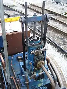 Se introducía agua en la caldera mediante una bomba accionada por uno de los cilindros (una práctica normal por entonces).