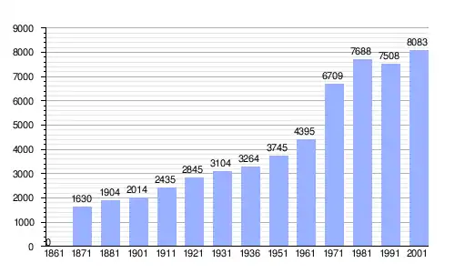 Gráfica de evolución demográfica de Noventa Padovana entre 1861 y 2001 |