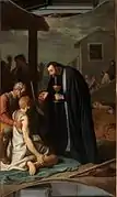 - San Juan Francisco Regis dando la comunión a un tullido por Miguel Ángel Houasse. (c. 1722, Museo del Prado)