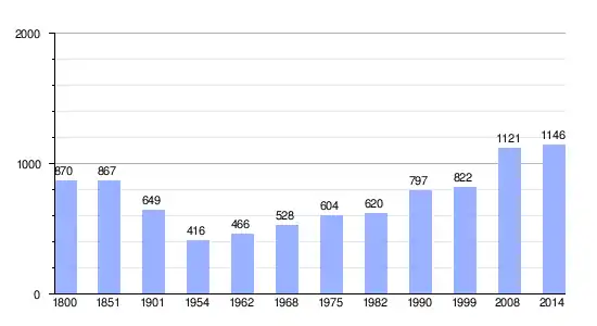 Gráfica de evolución demográfica de Noyers-Bocage entre 1800 y 2014 |