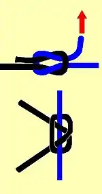 Variantes del nudo de rizo o nudo cuadrado mal confeccionadas: nudo de la abuela y nudo de ladrón
