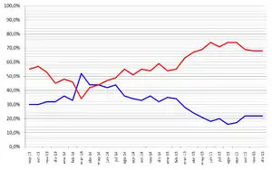 La Nueva Mayoría (NM)[8] fue una coalición política chilena que agrupaba a un conjunto de partidos de centroizquierda[3] e izquierda, creada en 2013. Fue estrenada en las elecciones presidencial, parlamentarias y de consejeros regionales de 2013 —siendo inscrita por primera vez en el Servicio Electoral (Ser el) el 30 de abril de ese año—[9] y posteriormente en las elecciones municipales de 2016.[10] Estuvo conformada por el Partido Demócrata Cristiano (PDC), Partido Socialista de Chile (PS), Partido por la Democracia (PPD), Partido Radical Socialdemócrata (PRSD), Partido Comunista de Chile (PCCh), Izquierda Ciudadana (IC) y el Movimiento Amplio Social (MAS). Dichos partidos políticos mencionados, junto a otros, participaron previamente en la Concertación de Partidos por la Democracia, alianza que encabezó el gobierno chileno entre marzo de 1990 y marzo de 2010.[11]