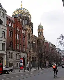 La Neue Synagoge (en español: Nueva Sinagoga) de Berlín se construyó en la Oranienburger Straβe entre 1859 y 1866 como la sinagoga central de la comunidad judía de Berlín. Es un importante monumento arquitectónico de la segunda mitad del sigo XIX. Tiene influencias de la arquitectura islámica y guarda parecido con la Alhambra.[cita requerida]