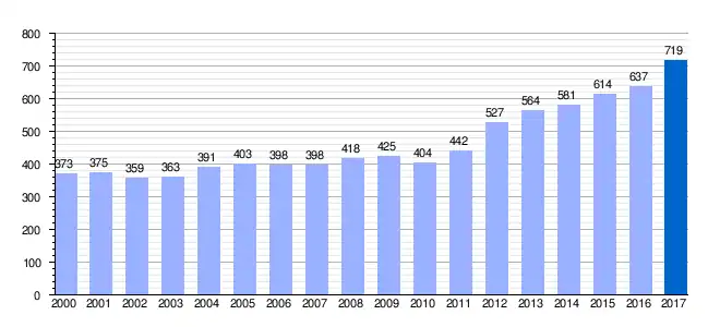Gráfica de evolución demográfica de Nuevo Naharros[2] entre 2000 y 2017 |