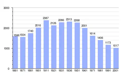 Gráfica de evolución demográfica de Nughedu San Nicolò entre 1861 y 2001 |