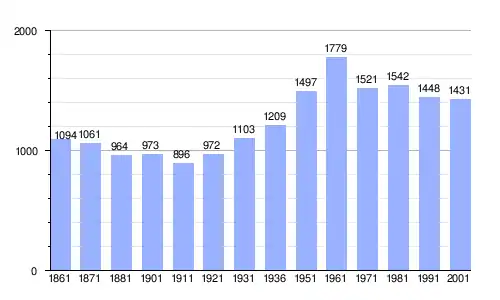 Gráfica de evolución demográfica de Nurallao entre 1861 y 2001 |