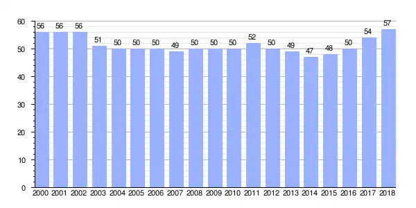 Gráfica de evolución demográfica de O Outeiro entre 2000 y 2018 |
