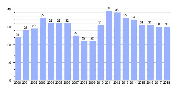 Gráfica de evolución demográfica de O Rial entre 2000 y 2018 |