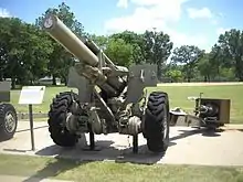 ![]() Un M114 155 mm en posición de disparo durante unas maniobras, 1985. | ||