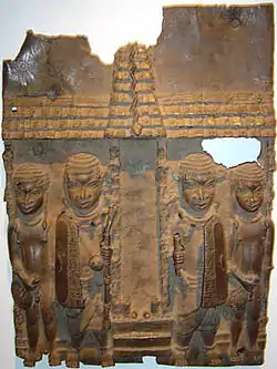 El oba vivía en un enorme palacio de madera situado en el centro de la ciudad. Los muros estaban decorados con placas de bronce y latón labrado.
