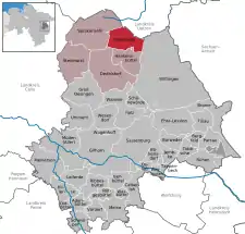 Se encuentra ubicado a poca distancia al oeste de la frontera con el estado de Sajonia-Anhalt, y muy cerca de las ciudades de Brunswick y Wolfsburgo.