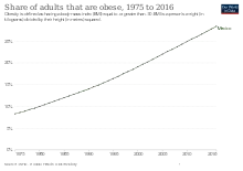 La obesidad en México está considerada actualmente como un grave problema de salud, ya que, 7 de cada diez personas adultas viven con problemas de exceso de peso; así mismo, uno de cada tres niños y adolescentes tiene sobrepeso u obesidad.[cita requerida] Sin embargo, a partir de los 20 años esta prevalencia se duplica (Masse. s.f.). Un niño obeso tiene 50% de probabilidades de seguir siéndolo en la adultez, incluso si se le detecta en edad escolar. Además, el exceso de grasa en edades tempranas tiene consecuencias funcionales muy graves de carácter psicosocial y médico (Masse. s.f.).