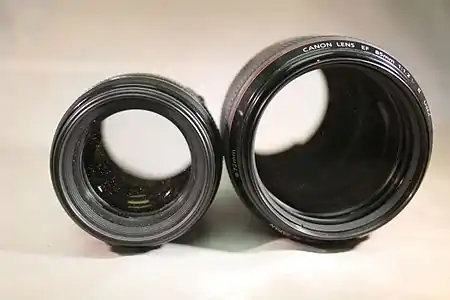 - Los objetivos de distancia focal fija suelen tener mayor apertura que los objetivos zoom. Estos objetivos de 85mm tienen una apertura máxima de f/1.8 (izq) y f/1.2 (der).
