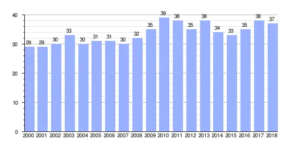 Gráfica de evolución demográfica de Obra de Paño entre 2000 y 2018 |
