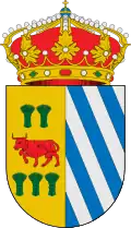 «Escudo partido. Primero, en campo de oro, una vaca de gules sumada de dos gavillas de trigo de sinople, en punta tres gavillas de trigo de lo mismo. Segundo, bandado de azur y plata. Al timbre corona real cerrada.»Boletín Oficial de la Provincia de Burgos nº 204 de 27 de octubre de 2009[1]