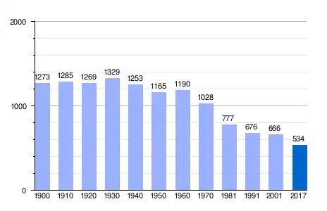 Población de derecho (1900-1991) o población residente (2001) según los censos de población del INE.[3] Población según el padrón municipal de 2017 del INE. |