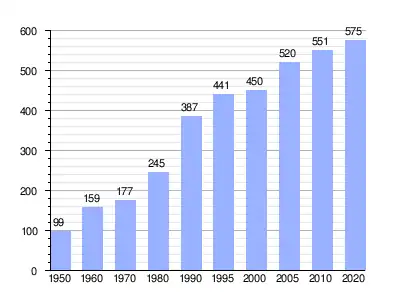 Población de los censos y conteos del Instituto Nacional de Estadística y Geografía (INEGI) de 1950 a 2010.[7] |