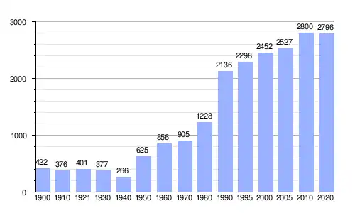 Gráfica de evolución demográfica de Ocuapan entre 1900 y 2020 |