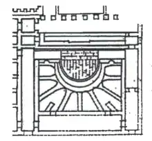 La cávea rodea el lado oriental de la orchestra y tenía entre 300 y 350 asientos para los espectadores [3][4] dispuestos en forma de escalón para una mejor visibilidad. Una estructura abovedada con numerosos espacios abovedados en forma de cono truncado sostenía la cávea. Una estructura similar se utilizó para la construcción de la zona de espectadores del Coliseo de Roma. La cávea está separada de la skene mediante parodoi.[2]