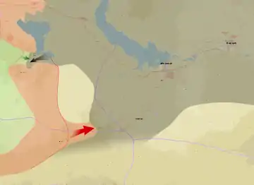 Entre el 26 enero y el 12 de febrero de 2017, se dieron duros combates cerca de Khanasir.[48][49][50] El 12 de febrero, 39 soldados y al menos 12 militantes fueron asesinados en un ataque al este de Khanasir y del sur del lago Jabboul.[51] Hacia el fin de febrero, la Guardia Republicana tomó el pueblo de Umm Miyal, al este de la carretera, junto con los cerros adyacentes.[52]