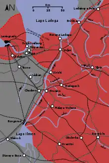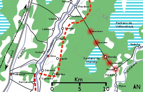 - Tras un mes de combates, el frente del Vóljov había pasado de 70 a 350 km.[1]