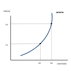 Lo anterior es conceptualizado en la curva de oferta, que es la representación gráfica de la relación –o elasticidad– existente entre el precio de un bien y la cantidad ofrecida del mismo.[17]