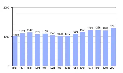 Gráfica de evolución demográfica de Oglianico entre 1861 y 2001 |