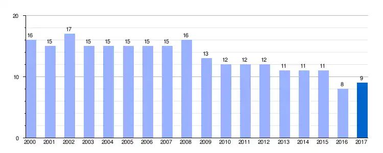 Gráfica de evolución demográfica de Ogueta entre 2000 y 2017 |