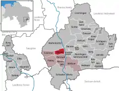 Se encuentra ubicado al sureste del estado, a poca distancia de la frontera con el estado de Sajonia-Anhalt.