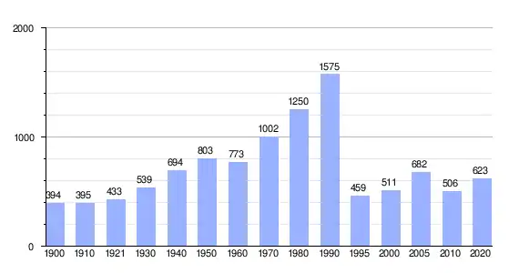 Gráfica de evolución demográfica de Ojo de Agua entre 1900 y 2020 |