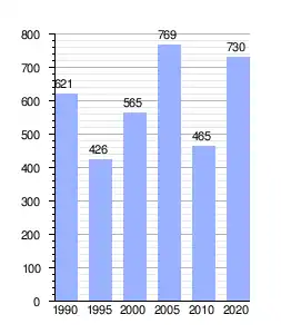 Población de los censos y conteos del Instituto Nacional de Estadística y Geografía (INEGI).[6] |