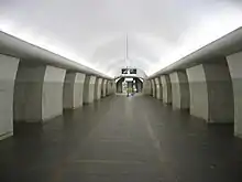 Los arquitectos de la estación fueron A. Strelkov, Nina Aleshina y Yu. Vdovin. Dispone de pilares de mármol blanco y paredes recubiertas de azulejos de cerámica blancos.[1]
