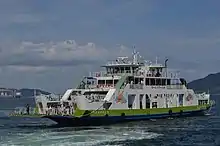 La mejor ruta para llegar a la isla desde la isla principal es tomar el tren Sanyo Shinkansen a la Estación de Mihara (el Nozomi no hace parada aquí); estando en Mihara hay que abordar el tren local de Kure hasta Tadanoumi, luego hay que caminar a la terminal y tomar un transbordo.