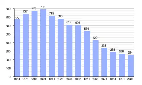 Gráfica de evolución demográfica de Oldenico entre 1861 y 2001 |
