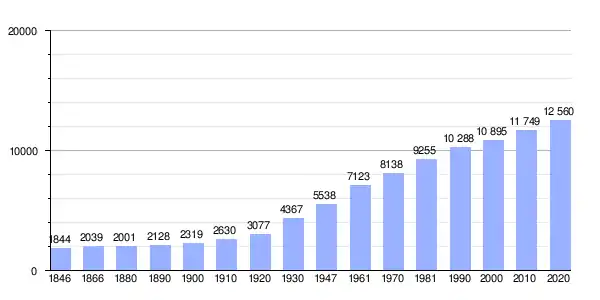 Todos los datos históricos relativos al actual municipio, el siguiente gráfico refleja su evolución demográfica, incluyendo municipios después de efectuada la fusión el 1 de enero de 1977.
