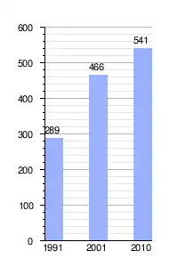 Gráfica de evolución demográfica de Olivares de San Nicolás entre 1991 y 2010 |
