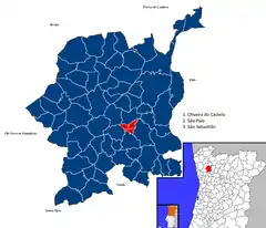 ![]() ![]() União das Freguesias de Oliveira, São Paio e São Sebastião Localización de União das Freguesias de Oliveira, São Paio e São Sebastião en Portugal | ||