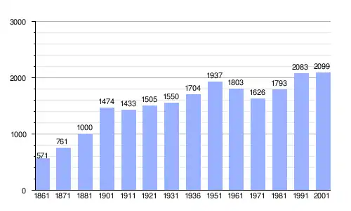 Gráfica de evolución demográfica de Oliveri entre 1861 y 2001 |