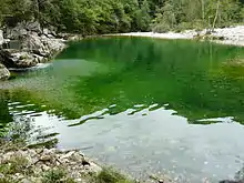 La olla de San Vicente es una poza natural formada por el río Dobra en el concejo de Amieva (Asturias) y que es famosa por el color verde esmeralda de sus aguas, con una profundidad que llega a los cinco metros.