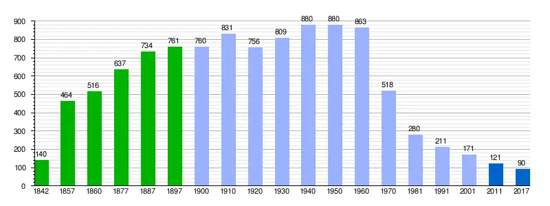 Población de derecho (1842-1897, excepto 1857 y 1860 que es población de hecho) según los censos de población del siglo XIX.[7] Población de derecho (1900-1991) o población residente (2001) según los censos de población del INE.[7] Población según el padrón municipal de 2011[8] y de 2017 del INE. |